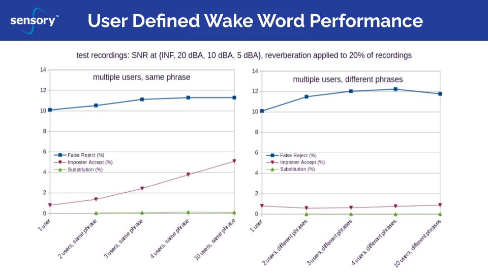 Version 7.6.0 introduces an advanced accuracy boost for enrolled user-defined wake words, letting users set their own phrase for device activation or task control. Enrollment is fast and user-friendly, requiring 4 wake word repetitions or about 20 seconds per user to create a highly accurate model, with model sizes as compact as 55 KB for a single user and scaling efficiently to 150 KB for ten users. The system supports multiple users or multiple phrases, while maintaining low false accept rates—even in noisy environments and across varied voices. Sensory’s light speaker verification now adds a layer of protection so only enrolled users can activate devices.
