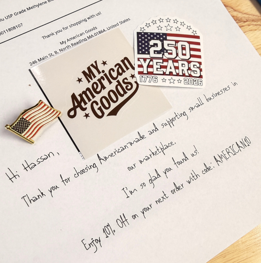 Orders from My American Goods® include a handwritten note and curated packaging experience